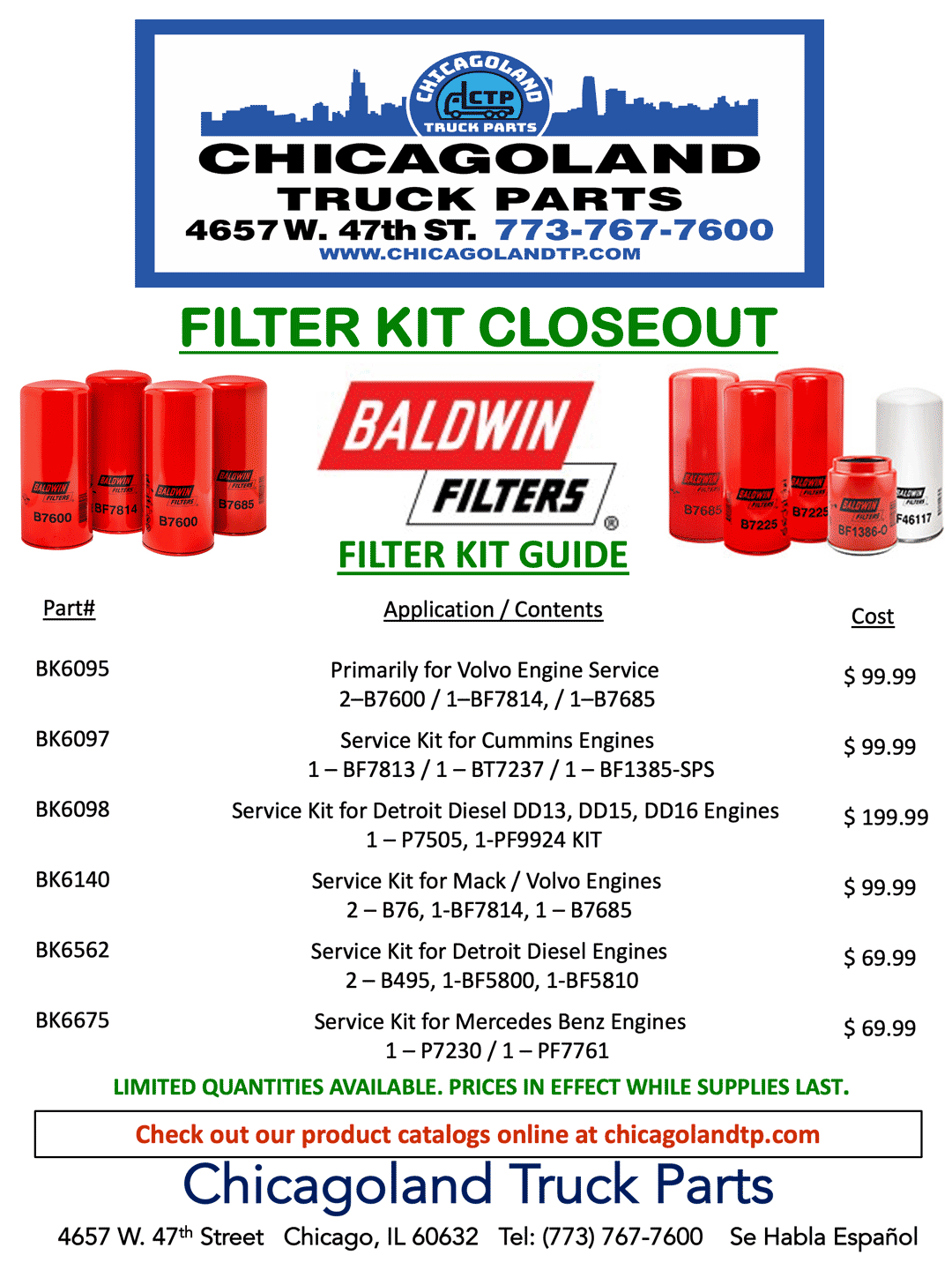 Established in 1985, Chicagoland Truck Parts has been providing the Chicago area with outstanding products, service and support—all to meet the demanding needs of the heavy-duty truck parts industry. Our years of experience and product knowledge ensure our customers’ needs are met to keep their business moving and increase productivity. We take great pride that our customers consider us not only their parts supplier, but their parts supply partner! Our Chicagoland team of professionals welcomes the opportunity to be your go-to parts resource. Contact or visit us today. Hablamos Español